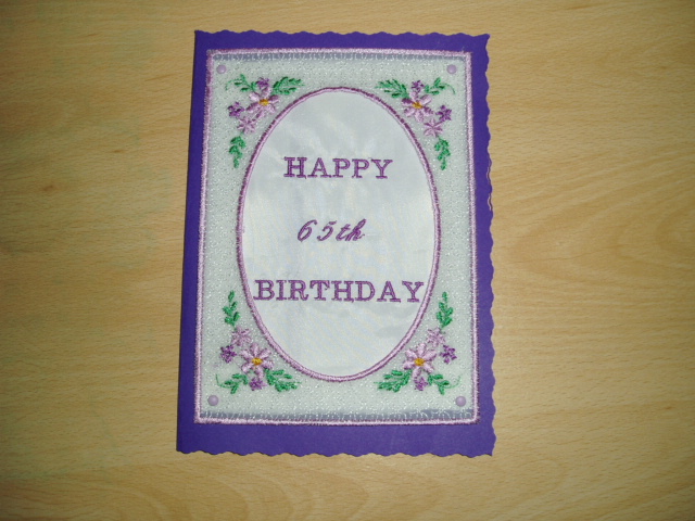 Now there is a certain person out there that will recognise this card I won't give your age away by naming you. But the card fits the bill so had to use it. I machine embroidered the whole card front then attached to the card with brads.